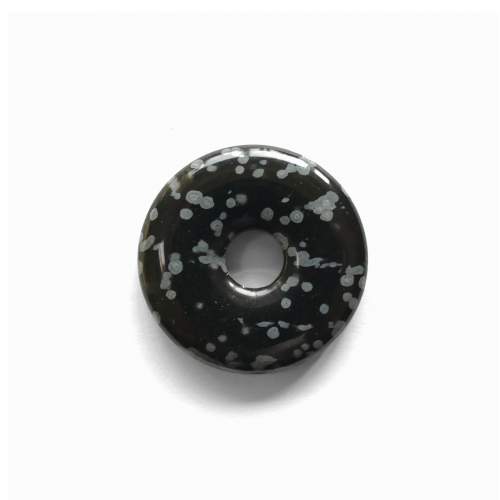 Bei diesem Artikel handelt es sich um einen Donut aus Schneeflockenobsidian mit 30 mm Durchmesser. Da es sich bei den verarbeiteten Steinen um ein Naturprodukt handelt können Farben, Form und Musterung vom Beispielbild abweichen.