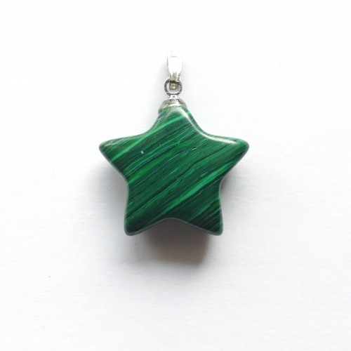 Bei diesem Artikel handelt es sich um ein Steinstern aus Malachit Imitat mit Metallöse. Die ungefähren Maße sind 20 mm. Bestens geeignet als herzliches Geschenk zwischendurch. Um den Hals getragen zeichnet sich der Anhänger durch ein zauberhaftes Erscheinungsbild aus. Da es sich bei den verarbeiteten Steinen um ein Naturprodukt handelt können Farben, Form und Musterung vom Beispielbild abweichen. Dazu passende Lederbänder und Silberkettchen finden Sie in der Rubrik Edelsteinschmuck - Zubehör. Verbraucherhinweis: Bitte bedenken Sie, dass alle beschriebenen Wirkungen wissenschaftlich nicht belegbar sind und daher keinen Besuch beim Arzt ersetzen.